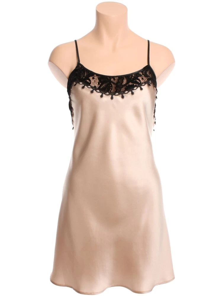 Dieses kurze Seiden-Nachthemd ist ca. 80 cm lang und hat verstellbare Spaghetti-Träger. Diese Seidennachtwäsche ist in den Größen 34 bis 44 (deutsche Damengrößen) und den folgenden Farben erhältlich: