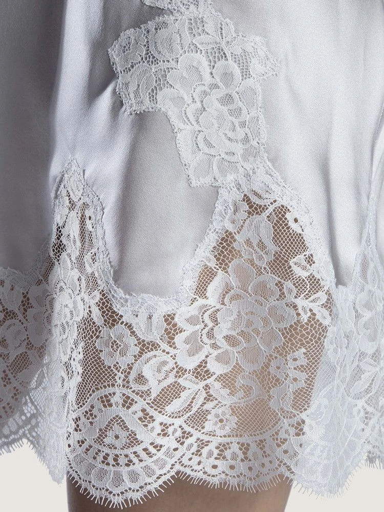 Das kurze Seiden-Negligé Soie d´Amour von Aubade ist eine luxuriöse Nachtwäsche in verführerischen Farben. Das edle Nachthemd besteht aus glänzendem Seidensatin (100% Seide) und exquisiter Blüten-Spitze.