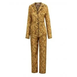 Luxuriöser Seidenpyjama Serpente mit langen Ärmeln. Dieser edle Seiden Pyjama ist aus bedrucktem, feinem Seidensatin gefertigt und kann als Schlafanzug oder Hausanzug getragen werden. Das Oberteil ist knöpfbar und hat eine Länge von ca. 68 cm. Der bequeme Schnitt und die langen Ärmel machen diesen Seiden Pyjama zu einem schicken und hautsympathischen Schlafanzug für das ganze Jahr.