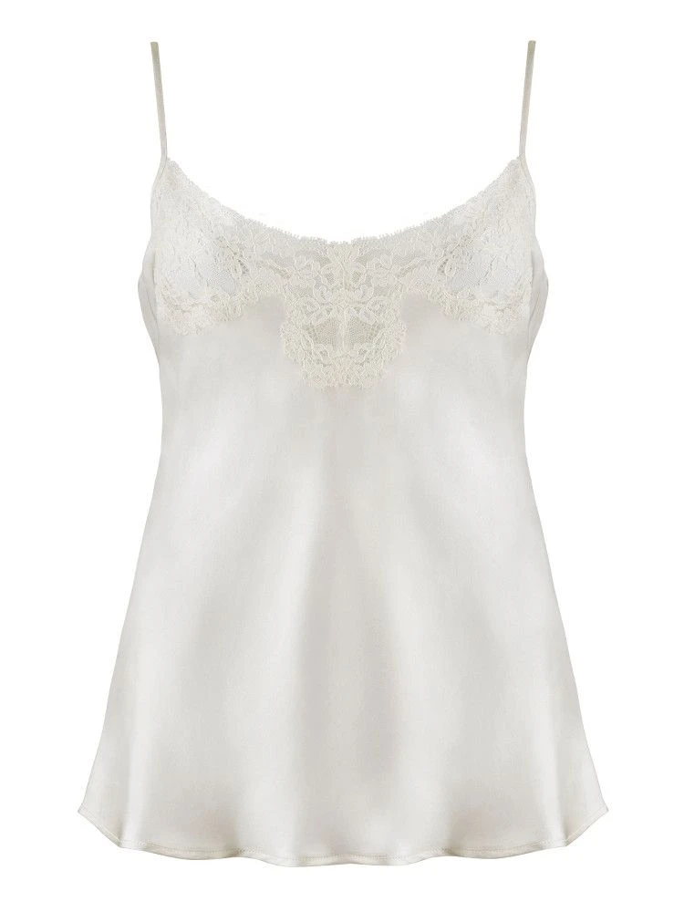 Das Seidentop Crépuscule Satiné von Aubade ist eine luxuriöse Oberbekleidung in sommerlichem Naturweiß. Das edle Top besteht aus glänzendem Seidensatin (100% Seide) und exquisiter Blüten-Spitze.