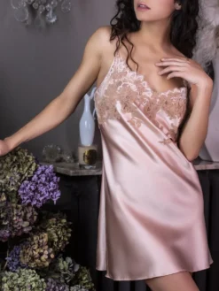 Der Kimono ist wird gewickelt getragen und seitlich mit Bändern geschlossen Er hat verschwenderisch weite, lange Ärmel und is die perfekte Ergänzung zu den separat erhältlichen Negligés aus der gleichen Kollektion.