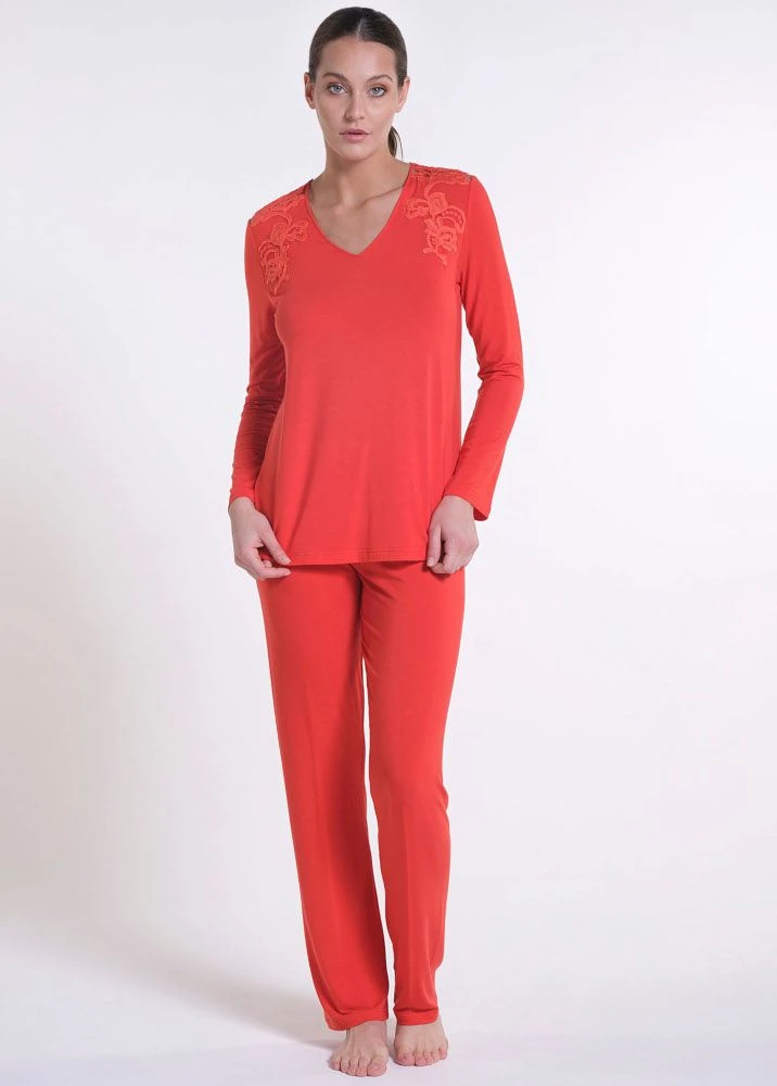 Schlafanzug Arancio Koralle-Rot aus Modal Jersey von Verdiani