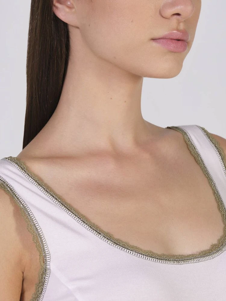 Das halb-lange Nachthemd WKND No. 10 von Verdiani Weekend besteht aus super-weichem Micro-Modal in einer hautsympathischen, elastischen Jersey-Qualität (92% Modal, 8% Elasthan). Für diese Kollektion wird ein besonders hochwertiger Lenzing Tencel® Markenmodal aus österreichischer Produktion verwendet. Das Nachthemd ist Made in Italy und in den Größen 36 bis 42 erhältlich. Dieses bezaubernde Nachtkleid ist ca. 90 cm lang. Es hat breite Träger und kontrastierende Details aus bronzefarbener Wäschespitze.