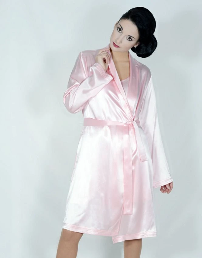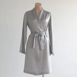 Dieser kurze Morgenmantelist die optimale Ergänzung zu der Nachtwäsche aus der gleichen Kollektion. Für die Pflege empfehlen wir Seidenwaschmittel.