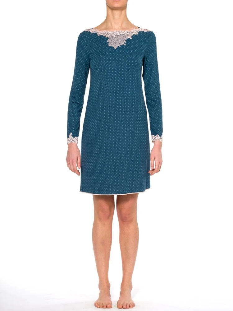 Dieses Nachthemd ist bei uns in petrol mit rosa Punkten und in den Größen 1 bis 5 erhältlich.