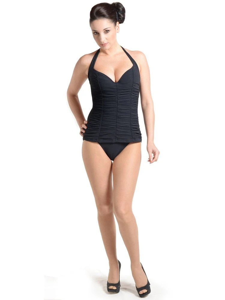 Der Badeanzug ist aus extra-weichem Feinjersey gearbeitet und im vorderen Teil mit für die Marke typischen Raffungen verziert. Die Vorderseite ist komplett doppellagig gearbeitet und im unteren Bereich etwas überlappend gestaltet – hierdurch entsteht der Eindruck eines Tankinis, was den Badeanzug angenehm figur-kaschierend macht. Er ist mit B- oder C-Cup erhältlich. Dieser Badeanzug ist in den Größen 38 bis 46 (deutsche Damengrößen) und den folgenden Farben erhältlich: