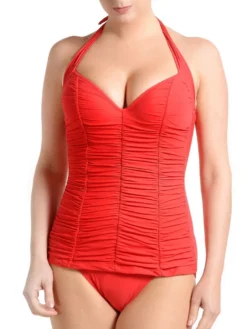 Der Neckholder-Badeanzug Tamia von Nicole Olivier besteht aus superfeinem Microfaser Gewebe und ist in einem besonders intensivem Royalblau gehalten. Der Badeanzug im Stil eines Tankini ist doppellagig gearbeitet und hat einen tief ausgeschnittenen Rücken. Es sind keine Cupgrößen ausgewiesen – der Badeanzug passt am Besten für B- bis C-Cup.