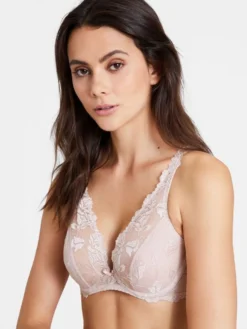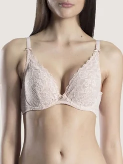 Die soften Cups sind mit weichem, elastischen Tüll innen abgefüttert. Am Decolleté ist der BH mit eleganter Spitze besetzt und im Rücken wird er mit einem doppelten, 4-fach verstellbaren Häkchenverschluss geschlossen.