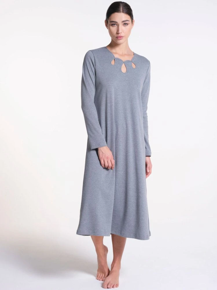 Dieses elegante Nachtkleid ist bei uns in grau meliert erhältlich.