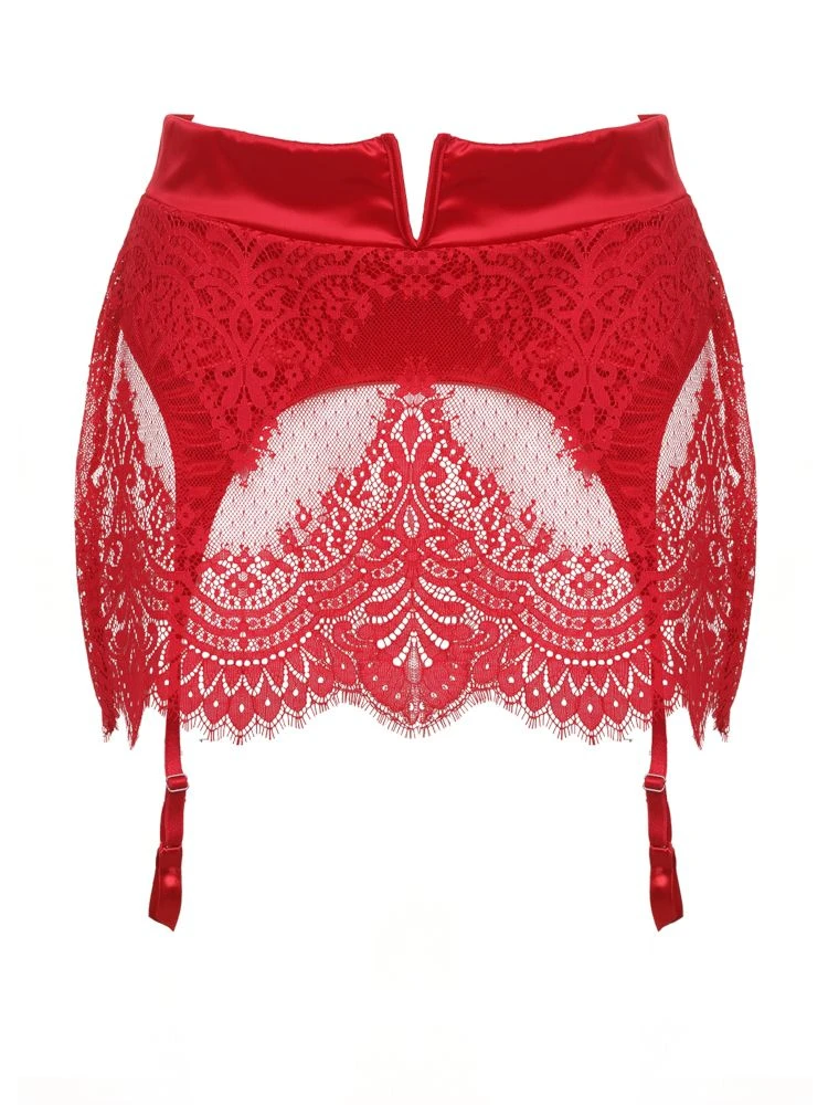 Der erotische Black Swan Strapsgürtel aus Spitze von Prelude Milano ist exclusive Spitzenunterwäsche Made in Europe. Das edle Teil besteht aus floraler Eye-Lash Spitze und elastischem Satin. Der aufregende Strapsgürtel ist aufgrund der floralen Spitze transparent.
